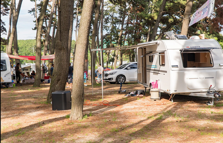 충남 서천, 춘장대해수욕장에 위치한 소나무 숲에 위치한 오토캠핑장이다.