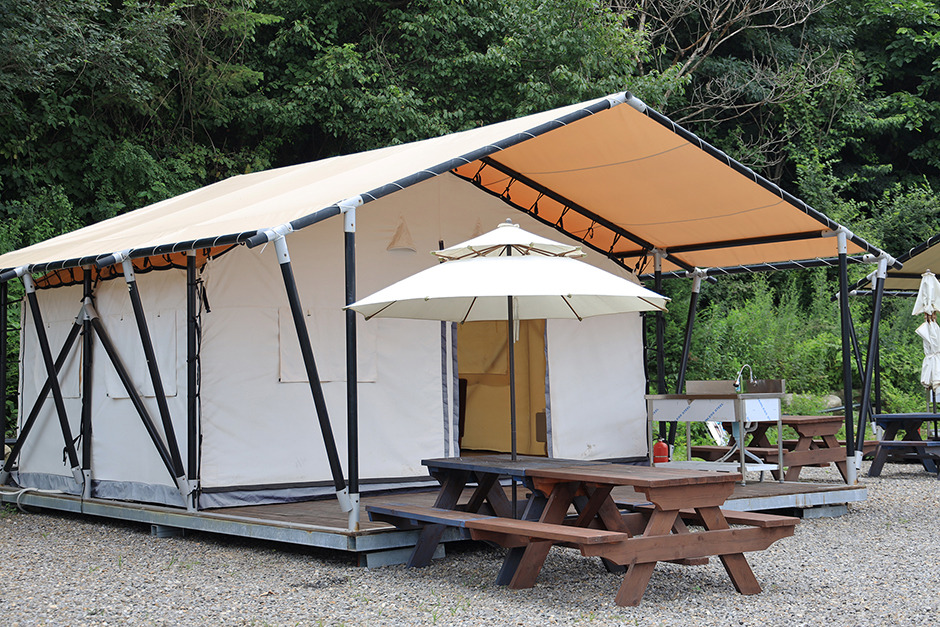 탁 트인 전망에 넓은 잔디 운동장을 여러 개 보유한 더히로플레이그라운드는 반려견과 함께할 수 있는 글램핑장으로 반려견들이 뛰어놀기 좋고, 보호자도 편히 쉴 수 있는 곳이다. 한개의 천연잔디와 다섯개의 인조잔디로 총 여섯개의 운동장과 오픈 야외 수영장이 있는 이곳에서 반려견들은 마음껏 뛰어놀고 신나게 물놀이도 즐긴다. 견종에 따라 방이 임의로 배정되며, 객실은 세스코가 관리하고 침구류도 매일 교환하기 때문에 청결 또한 보장한다. 또한 반려견들이 놀고나서 씻고 말릴 수 있는 공간, 언제 어디서나 볼일보고 편하게 치울 수 있는 비닐봉지, 무거운 짐을 나를 수 있는 카트 웨건 등 세심한 것 하나까지 준비되어 있다. 바베큐존이 따로 있지만 객실 바로 앞에서도 바베큐가 가능하다.