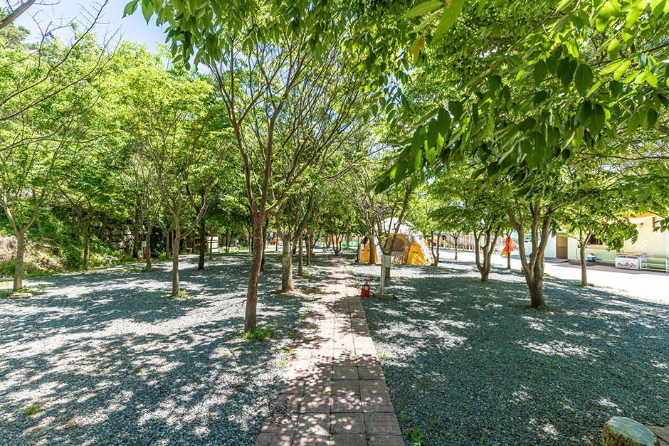 캠핑장은 일반 야영장 6면으로 이뤄져 있는데 잔디 사이트 4면은 가로 5m 세로 5m, 데크 사이트 2면은 가로 6m 세로 4m이다. 화장실과 샤워장은 남녀를 구분해 2개소가 있지만, 개수대는 1개소다.