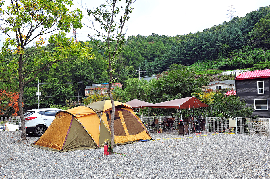 그늘이 있는 나무 데크존과 일반 나무 데크존이 있다. 나무 데크는 3m x 3m 크기의 사이트로 구성돼 있다. 조금 더 넓은 사이트를 이용하고 싶다면 파쇄석 사이트를 예약하면 된다. 파쇄석 존은 한 가족이 이용할 수 있는 7mx5m와 두 가족이 이용할 수 있는 12mx8m로 구성돼 있어 여러 명이 넓게 이용하기 좋다. 여름에는 수영장을 운영하며 계곡이 바로 옆에 있어 여름철 피서지로도 제격이다.