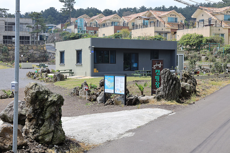 유수암 캠핑장은 제주 애월 한라산 중산간 지대 작은 마을에 있다. 캠핑장 바로 뒤에 대성 휴양 빌리지와 백강 수피아 빌리지가 병풍처럼 서 있고, 한국마사회의 렛츠 런 파크 제주가 지척이다. 마을 안에 있어 바다가 보이는 전망은 없지만, 아늑하고 조용하다. 사이트는 10개로 작은 규모지만 사이트를 넓게 사용할 수 있도록 사이트 간의 거리가 넓고, 샤워실과 개수대가 2개의 건물에 각각 갖춰져 있어 편하게 이용할 수 있다.