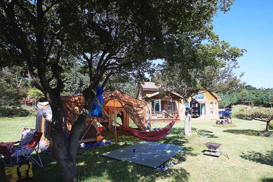 진경원 민박 캠핑장은 당진시청을 기점으로 약 13㎞ 가량 떨어져 있는 당진시 순성면에 자리하고 있다. 넓은 공간의 캠핑장엔 잘 조성된 잔디와 생태 체험장이 있고 사이트 크기를 따로 정해 두지 않았지만 대형 텐트나 타프를 설치하기에 무리가 없다. 개인 트레일러와 개인 카라반 동반이 가능하며, 소형견에 한해 반려동물도 출입할 수 있다. 샤워장과 화장실이 잘 관리돼 있고 매점을 운영하지 않지만, 캠핑장 가까운 곳에 슈퍼가 있어 불편함이 없다.