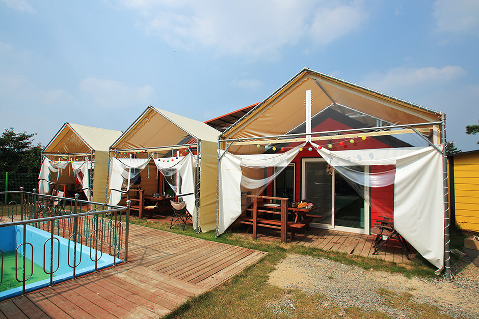 영천 솔롱고 글램핑은 경북 영천시 금호읍에 자리 잡고 있다. 영천시청을 기점으로 천문로와 칠백로를 번갈아 타면 닿는다. 도착까지 걸리는 시간은 20분가량이다. 캠핑장 초입에 들어서면 컨테이너를 모던한 분위기로 꾸민 매점이 나온다. 이곳에서 우측으로 발걸음을 옮겨 아기자기한 터널 길을 거치면 글램핑장으로 진입할 수 있다. 캠핑장이 숲 속에 안긴 듯 아늑해 기분까지 편안해진다. 이곳저곳을 살피면 운영자의 세심함이 엿보이는 소품이 설치돼 있어 눈이 즐겁다. 12개 동의 글램핑 객실 내부는 침대, 냉난방기, 화장실, 샤워장, 개수대 등 일상생활을 하기에도 부족함이 없는 물품으로 채웠다. 외부 데크에는 바비큐 시설을 배치해 프라이빗한 캠핑을 만끽할 수 있다. 캠핑장 근처에 영천만취당고택, 도계서원, 금호강 등 볼거리가 많아 연계 관광이 용이하다.