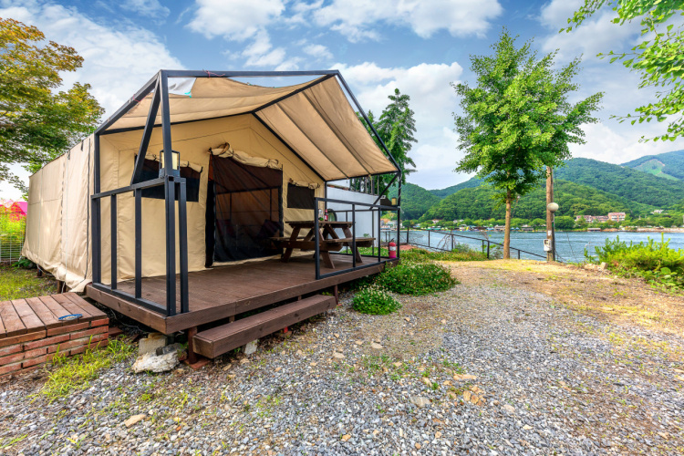 수상 레저 시설이 많은 가평에 위치한 글램바오 캠핑장은 펜션과 글램핑을 운영 중이며, 바로 옆에 워터파크, 수상스키와 웨이크보드, 플라이보드 등을 강습할 수 있는 수상 레저 시설이 함께 있다. 글램핑은 총 5개 운영 중인데 다각형 큐브 모양의 독특한 외관에 내부는 화장실과 샤워실 등 편의 시설을 갖추고 있으며, 각 글램핑마다 프라이빗한 개별 발코니에서 북한강을 조망하며 바비큐를 즐길 수 있도록 되어 있다. 펜션은 다양한 규모로 총 4개 운영 중이다.