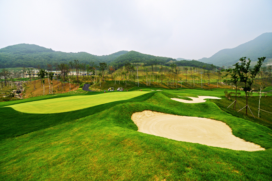 산길코스와 들길코스로 나뉘어 있으며 해발 250m~380m의 수레의 산 능선에 위치하여 바람의 영향과 장마철 폭우로부터 피해가 주변보다 적다. 또한 안개가 거의 없는 지역이다. 아름다운 자연 속에 생태환경과 지형을 최대한 살린 코스로 18개의 홀이 각기 다른 특징을 지니고 있어 다양한 홀 공격을 가능케 하여 전락성을 극대화했다. 곳곳에 많은 해저드와 벙커가 도사리고 있어 거의 모든 아이언을 사용해야만 좋은 스코어를 얻을 수 있다.