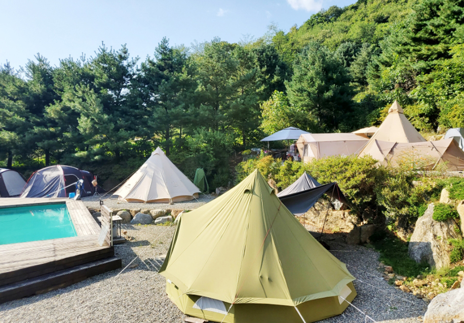 경기도 양주시 남면에 자리 잡은 은하수 캠핑장은 사람을 위한 수영장은 없어도 반려견을 위한 풀은 갖추고 있는 반려견 친화 캠핑장이다. 서울 근교에서 반려견과 함께 추억을 남기고 싶다면 추천하는 장소다. 넓은 잔디와 반려견을 위한 안전시설 등은 강아지들과 함께 힐링을 즐기기에 좋다. 2020년 여름에 오픈한 만큼 깨끗하고 쾌적한 시설을 갖추고 있다. 캠핑 사이트는 방문하는 순으로 선착순 배정되니 좋은 자리를 원한다면 일찍 방문하는 것을 추천한다. 매점은 따로 운영하고 있지 않아 캠핑에 필요한 음식이나 장작 등은 미리 구비해서 방문해야 한다. 숲에 둘러싸인 조용한 시골 마을의 정취가 느껴지는 아늑함이 느껴지는 곳이다. 바로 옆에 낚시터도 있다. 동반할 수 있는 반려견은 2인 1견으로 15kg 기준으로 요금을 책정하고 있다.