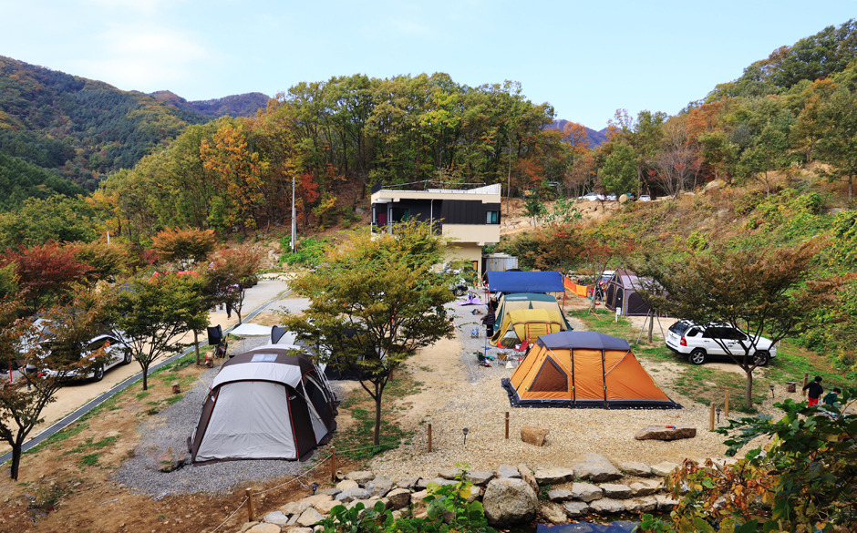 서울에서는 1시간 이내로 접근성이 좋다. 산 중턱에 4단으로 구역을 나눠서, 총 16개의 사이트들이 배치되어 있다. 사이트들은 구역별로 잔디 바닥 또는 파쇄석으로 되어 있다. 개수대나 샤워실 화장실 등이 잘 관리되고 있고, 매점은 다양한 물품이 있고, 무인 키오스크로 운영되어 편리하다.