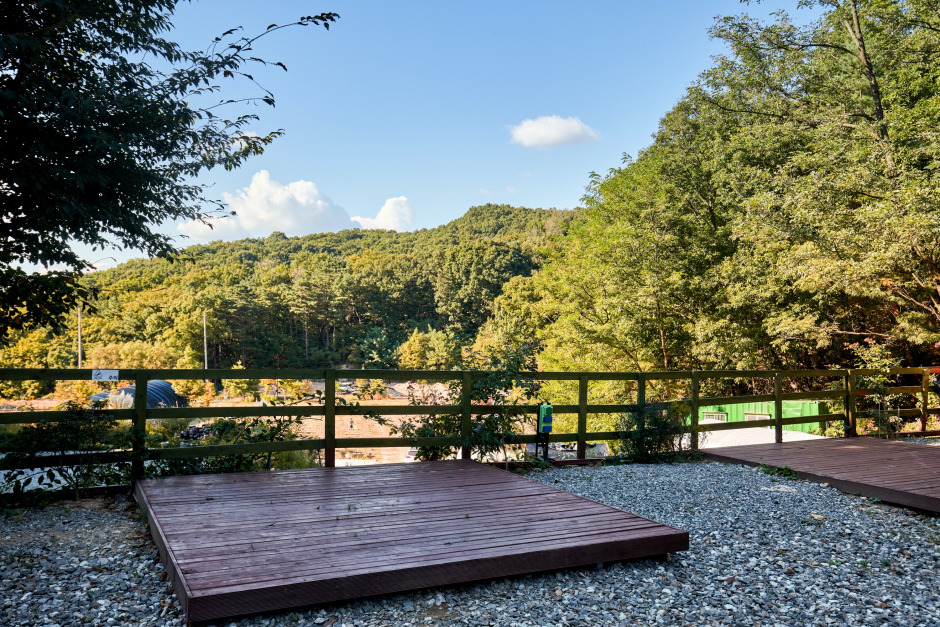 마운틴캠핑장은 경기도 용인시에서 가장 높은 곳에 위치한 캠핑장이다. 울창한 산림 속에 있어 그늘이 좋고 전망이 좋다. 마운틴캠핑장은 파쇄석 사이트 39면과 데크사이트로 15면으로 나뉘는데, 각 6m×6m, 8m×10m 등 다양한 넓이가 준비되어 있다. 특히, 절벽에 가까운 위치에 자리한 나무 데크 사이트는 인기가 많다. 전기, 와이파이, 샤워실 등이 갖춰져 있고 공용시설 내부는 깨끗하고 이용에 필요한 비품들도 잘 갖춰져 있다.