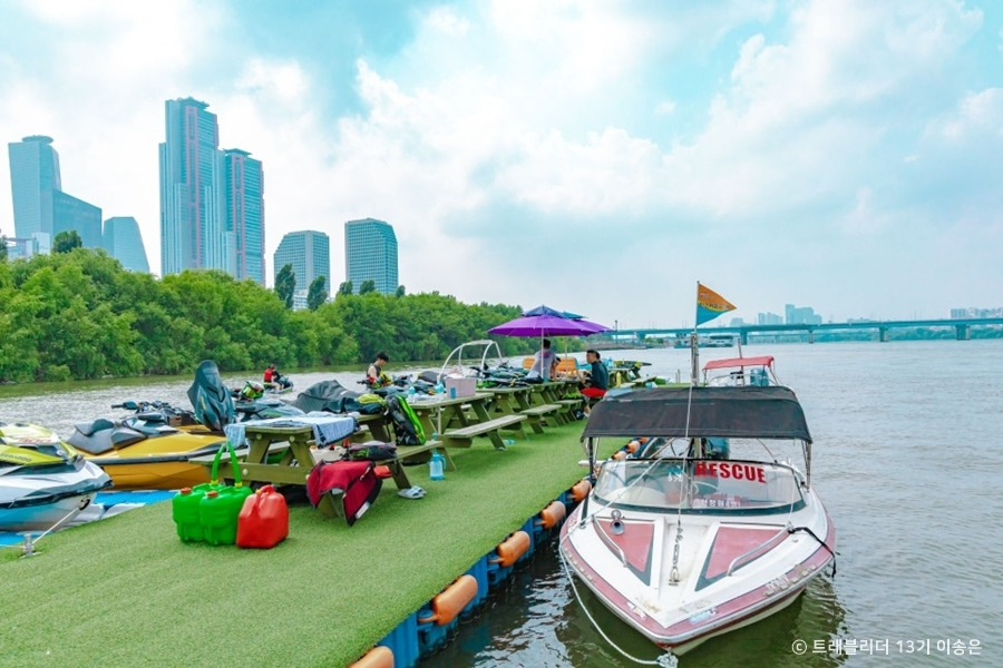 여의도 유람선 이랜드크루즈 선착장 바로 옆에 있는 한강레져스포츠에서는 모터보트와 제트스키를 비롯해 수상스키, 웨이크보드, 바나나보트 등 한강을 배경으로 다양한 수상레저를 즐길 수 있다. 멀리 떠나지 않고도 도심 한복판에서 수상 레포츠를 즐길 수 있어 특히 인기다. 모터보트와 제트스키는 거대한 한강을 짜릿한 속도로 가로지르며 시원한 강바람을 즐기기에 좋다. 한강의 물살을 온몸으로 느껴볼 수 있는 웨이크보드도 매력적이다. 초보자들도 간단한 강습만 받으면 도전해볼 수 있다. 다른 곳에서는 접하기 어려운 플라이보드도 가능하다. 소형 제트엔진이 달린 보드를 타고 물 위로 솟구치며 자유롭게 움직이는 플라이보드는 마치 영화 속 히어로처럼 하늘을 나는 기분을 느껴볼 수 있다. 이곳에선 플라이보드 국가대표가 직접 강습에 나서 더욱 특별한 추억을 만들 수 있다.
