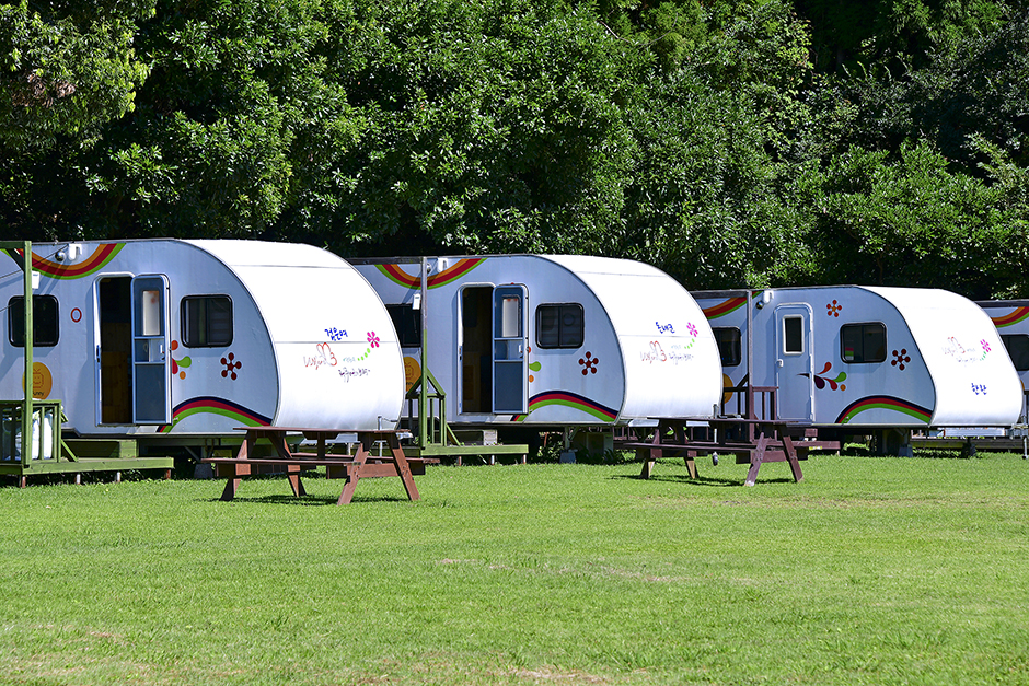 카라반 내부에는 침대, 침구, TV, 에어컨, 반방기, 냉장고, 전자레인지, 인덕션, 전기밥솥, 커피포트, 주방용품, 헤어드라이어, 수건, 샴푸, 비누, 바디클렌저, 치약 등이 구비되어 있으며 와이파이 사용이 가능하다. 여름에는 수영장이 있어 시원하게 여름을 보낼 수 있다. 주변 관광지로는 돈내코 유원지, 상효원, 정방폭포, 천지연폭포, 쇠소깍 등 제주의 관광명소가 자동차로 10분 거리에 있어 편안하게 둘러볼 수 있다.