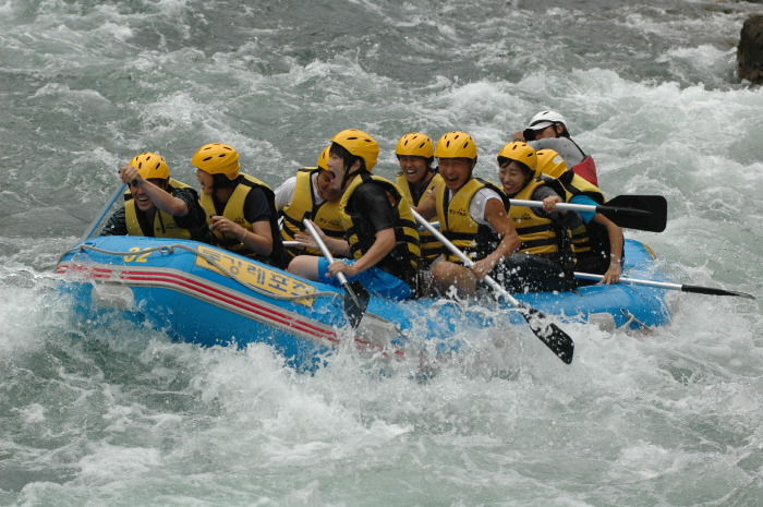 래프팅은 고무보트를 탄 6~8명이 호흡을 맞추어 계곡의 급류를 헤쳐 나가는 레포츠이다. 우리나라에서는 동강(평창·영월·정선), 한탄강(철원·연천), 내린천(인제)지역 래프팅이 3대 래프팅지로 꼽힌다.