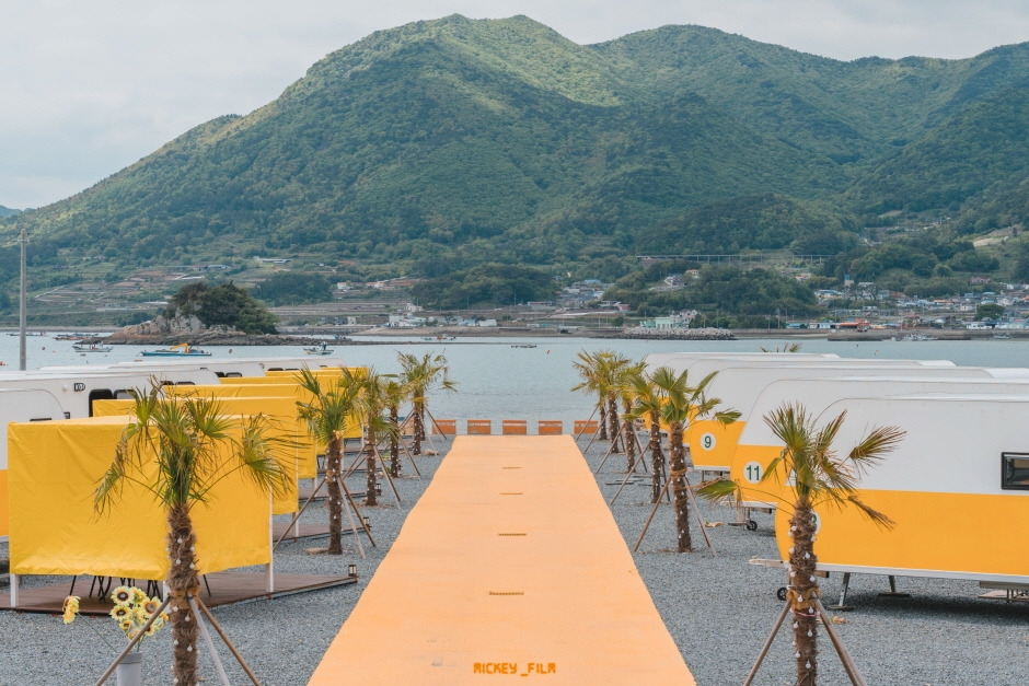 남해 노랑카라반 & 노랑 고카트는 아름다운 남해바다와 다양한 체험을 즐길 수 있으며 아이부터 어른까지 온 가족이 함께할 수 있는 공간이다. 언제든 이용할 수 있는 해변과 갯벌이 준비되어 있으며 갯벌체험, 선상낚시, 고카트체험 등 생각만으로 즐거운 놀거리가 가득하다. 또한 저녁이면 붉은 노을에 온 바다가 물든 모습을 볼 수 있다.