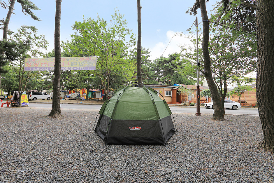 충남 서천, 춘장대해수욕장에 위치한 소나무 숲에 위치한 오토캠핑장이다.