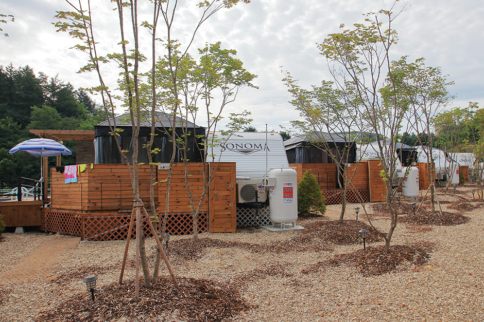 디투어스캠프클럽은 충북 제천시 청풍면에 자리했다. 제천 시청을 기점으로 약 25km 거리에 있으며, 자동차로 청풍호로, 배시론로, 청풍명월로를 차례로 거치면 닿는다. 도착까지 소요 시간은 40분 안팎이다. 이곳은 수려한 경관으로 이름 높은 청풍호를 바라보며 따뜻함을 만끽할 수 있는 개별 제트 스파가 있어 인기다. 방송에도 소개된 바 있어 캠핑장을 찾아오는 사람이 많다. 캠핑장에는 17대의 카라반을 마련했다. 객실 내부는 일반 호텔 수준으로 꾸며져 있다. 외부 전용 데크는 잘 돼 있다. 사방이 가로막힌 프라이빗 공간에서 청풍호의 풍경을 감상하며 제트 스파로 몸과 마음을 어루만질 수 있다.