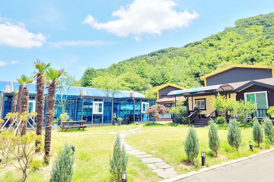 물놀이장, 놀이터, 운동시설, 펜션, 카페