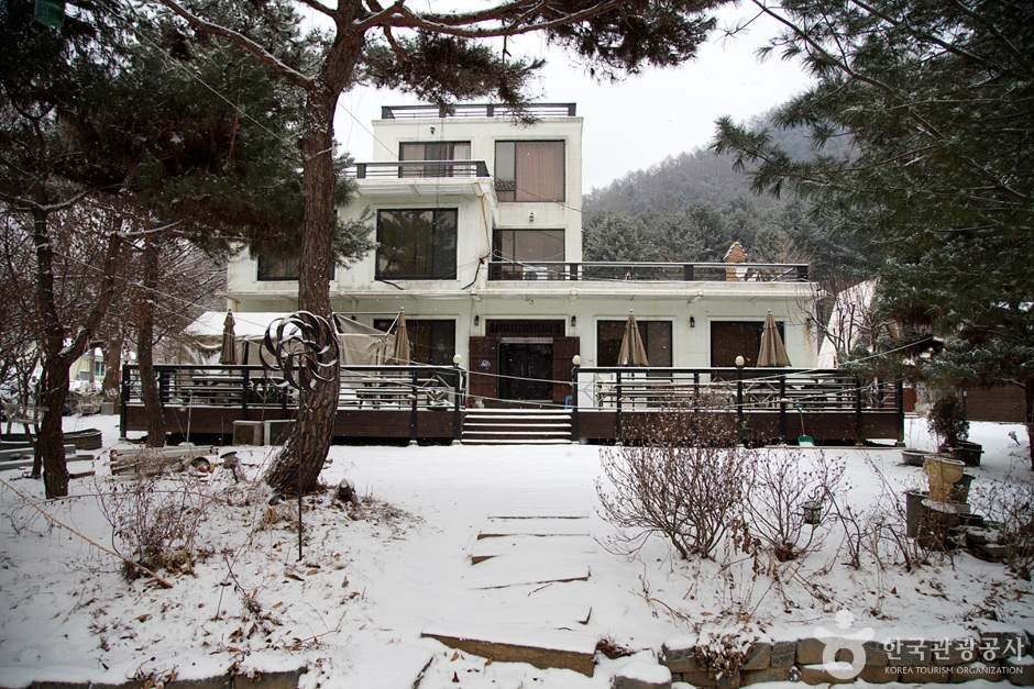 캠핑장은 글램핑 사이트 9개 동(5 m×10m)이 천연잔디 광장을 품고 어우러져 있다. 바로 앞에는 가평천이 흐르고 있어 탁 트인 전망을 선사한다. 이곳 캠핑장은 글램핑 사이트 외에도 펜션을 함께 운영 중으로 예전에는 이름을 날리던 펜션이라고 한다. 그만큼 시설도 신경을 썼는지 상당히 고급스러운 느낌이다. 사이트 간의 거리도 적당히 멀고 전용데크에는 나무가 사이트를 덮고 있어 천연 타프 역할을 한다. 카바나식 글램핑과 티피텐트형 사이트로 구분되어 있어 각 이용자의 취향에 맞게 선택을 할 수가 있다. 이 캠핑장의 장점인 천연 그라운드를 이용하여 작은 음악회를 위한 라이브 무대가 설치되어 있는 모습이 마치 가평 자라섬에서 열리는 재즈 페스티벌의 무대인 것처럼 느껴진다. 최근에는 정크아트로 유명한 작가님의 작품들을 캠핑 장내 곳곳에 설치하여 이용고객들은 무료관람이 가능해 기념사진을 남기기에 좋은 장소이다. 수량이 풍부한 맑은 물이 흐르는 가평천이 있어 캠핑과 물놀이를 겸해서 할 수 있다.