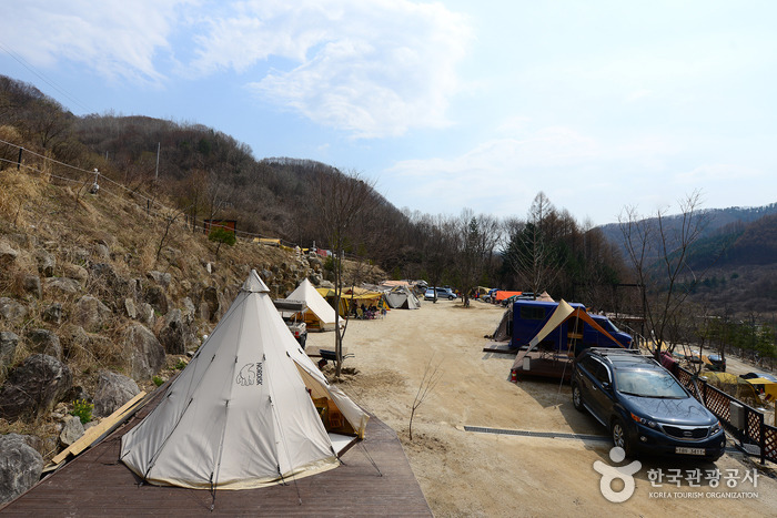 계곡 옆 사이트는 캠핑장 앞 도로 건너편에 따로 있어 공용 시설 이용이 불편하긴 하지만 화악산 계곡이 바로 옆에 있어 낮에는 물놀이하기 좋고 밤에는 시원한 물소리를 들으며 잠을 청할 수 있다. 모든 사이트에서 쏟아지는 별을 볼 수 있으니 휴식하기 충분하다.