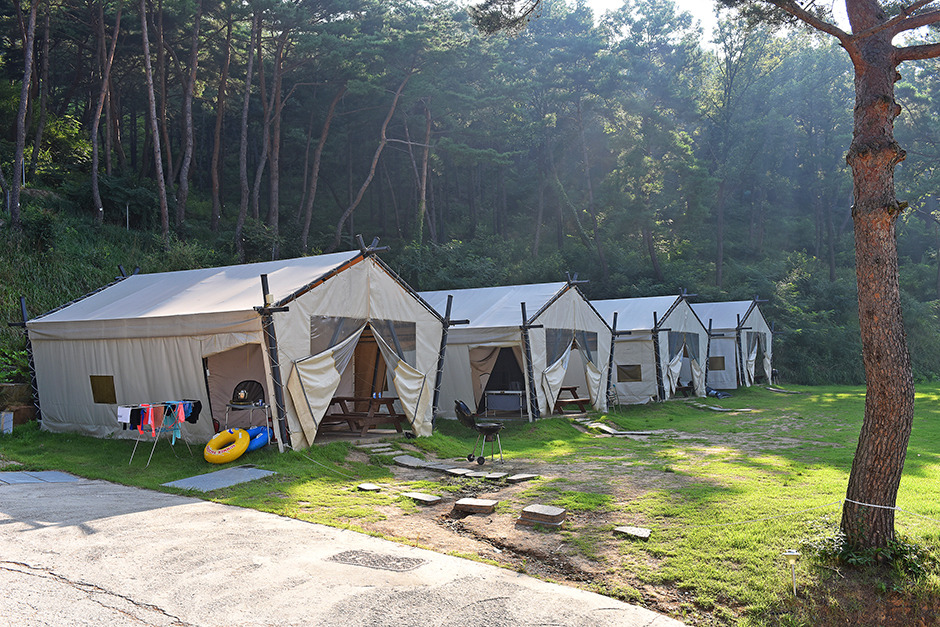 마이웨이 리조트 관광농원은 조용한 숲속의 울창한 소나무들로 둘러싸여 있는 한적한 캠핑장이다. 글램핑, 펜션, 야영장이 함께 있으며, 글램핑 14동, 펜션 4동, 야영장 사이트 7개를 가지고 있다. 글램핑은 잔디동과 수령 50년이 넘는 소나무가 빼곡한 대자연의 품속에서 안락하게 쉴 수 있는 숲속 글램핑동과 그 외 하늘동, 수영장동 등이 있다.