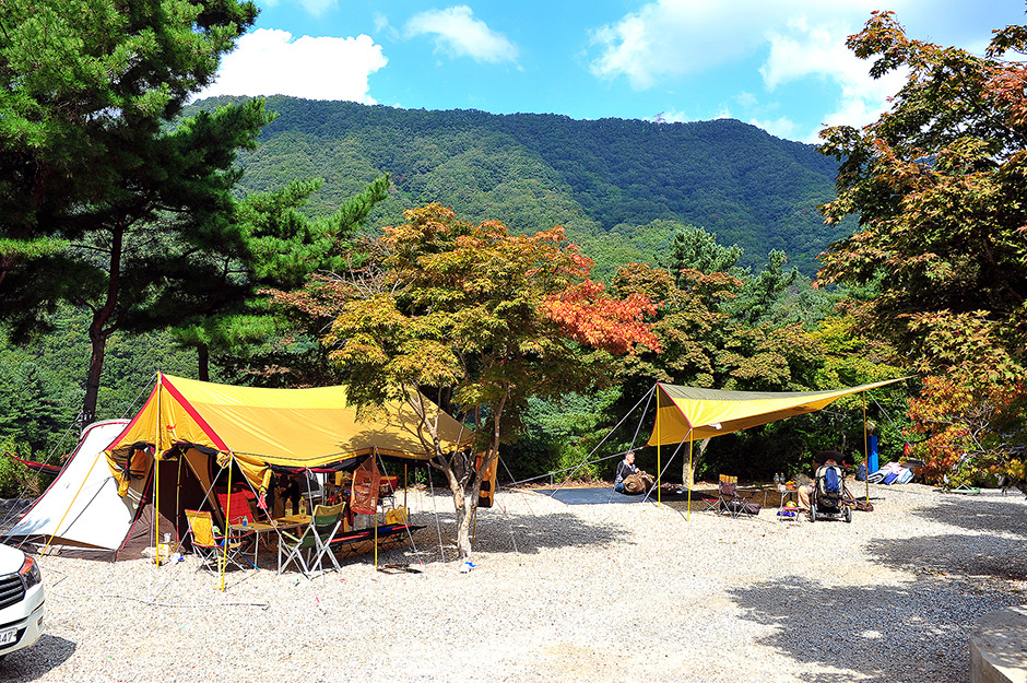 총 80면의 사이트가 계단식으로 형성되어 있으며, 사이트 공간이 널찍해 여유롭게 텐트를 칠 수 있어 편안하게 지낼 수 있다. 텐트를 치고도 자리 공간이 남아 어린 자녀들과 텐트 옆에서 야구, 캣치볼 등 간단한 운동을 한다. 어린이들의 놀이공간인 트램펄린도 여러 대가 설치되어 있어 기다리는 대기 시간 없이 맘껏 뛰어놀 수 있다.