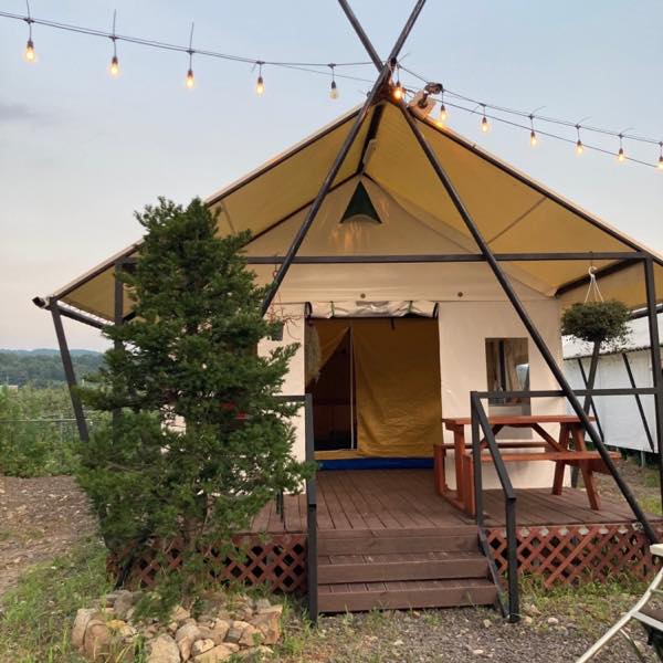 영천시 화북면에 위치한 채송화 카페&글램핑은 카페와 글램핑장이 함께 있는 곳으로, 글램핑 총 5사이트만 운영되는 소규모의 캠핑장이다. 한적하고 조용하며, 밤에는 하늘에서 쏟아지는 별들을 보기에 좋은 글램핑장이다. 카페는 물론 글램핑도 감성적으로 인테리어가 되어 있어 눈이 즐겁고, 바로 옆에는 세븐일레븐 편의점이 있어 쉽게 식음료와 필요한 비품을 구입할 수 있어 편리하다. 글램핑 내부는 개별 화장실이 준비되어 있고, 냉난방이 잘되어 있어 사계절 안락한 글램핑이 가능하다. 식기류와 침구는 기본적으로 구비되어 있으나, 세면도구, 수건, 부탄가스, 휴지, 드라이어기는 별도로 준비해야 한다.