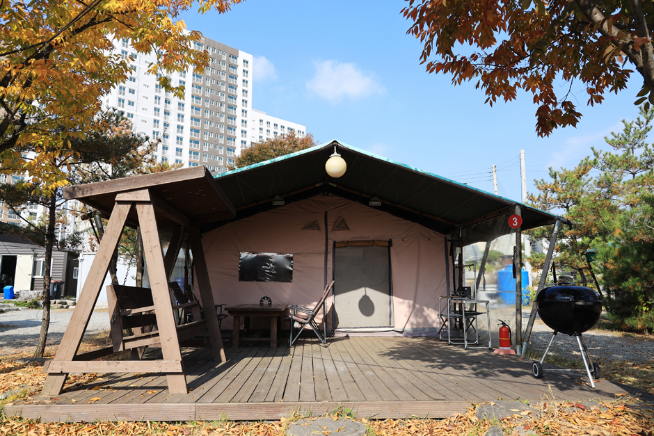 글램핑 약 20여동과 매점, 개수대, 샤워장 등의 시설을 갖추고 있으며 여름에는 수영장도 운영한다. 특히 놀이방과 탈것, 트램폴린 등의 어린이 놀이공간을 갖추고 있어 어린이를 동반한 가족에게도 인기 있다. 객실과 시설은 깨끗하게 관리되고 있어 쾌적하며 예약제로 관리한다. 도심 속에 위치해 대형마트가 5분 거리에 있고, 각종 배달음식도 시켜먹을 수 있다.