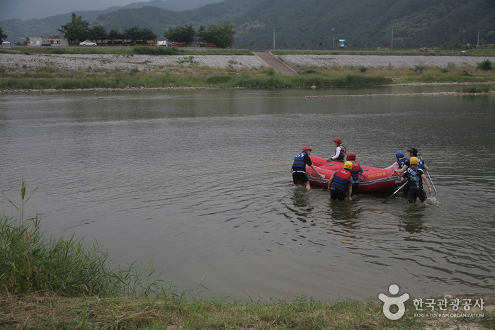 래프팅보트 49대, 안전보호장비 일체, 식당,숙박, 온천욕
