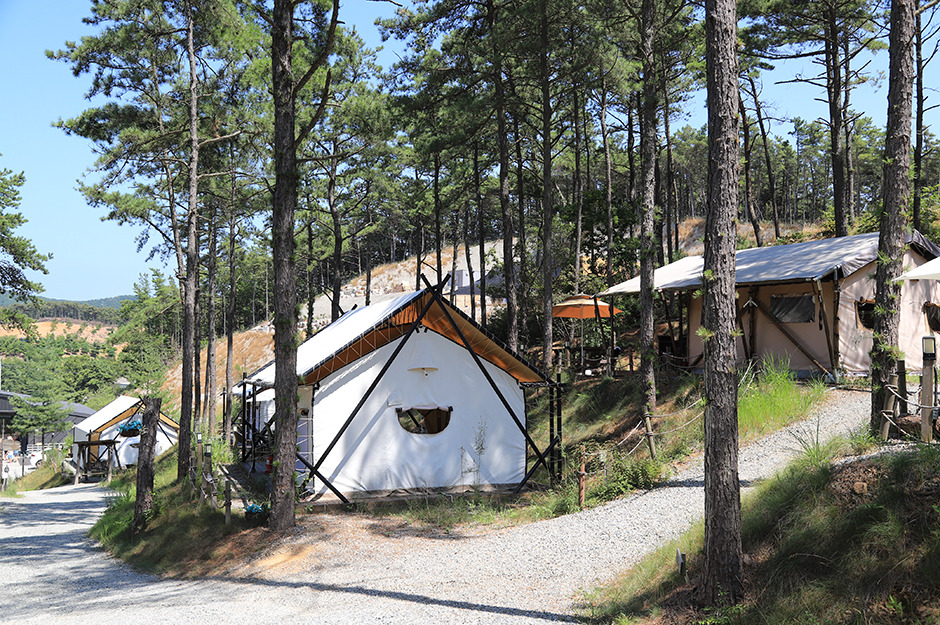 17개 사이트로 규모는 크지 않지만 바다가 보이는 오션뷰 캠핑장이다. 해수욕장까지 2~3분 거리로 아이들과 물놀이하기 좋다. 해수욕장 근처 편의점, 카페 등 주변 편의시설 이용이 편하다. 캠핑 사이트는 키 큰 소나무가 많아 그늘이 적당하고, 아이들이 좋아하는 트램펄린 등 놀이시설도 갖춰져 있다.