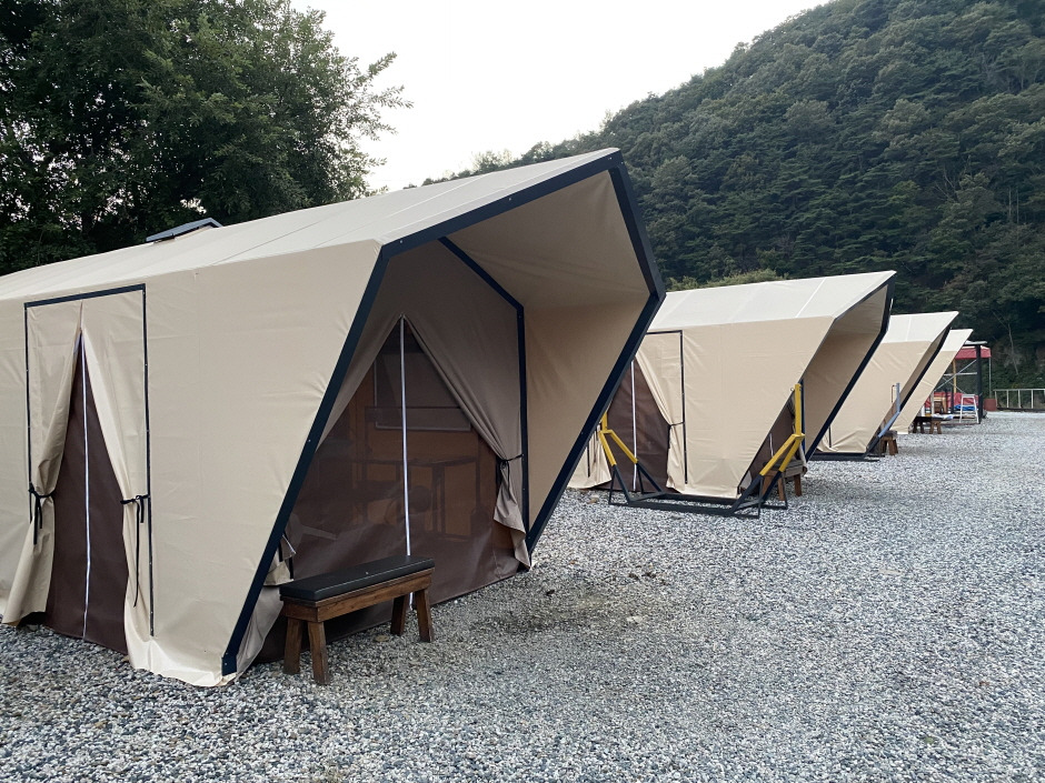 충북 괴산에 위치한 글램핑 스테이션은 올갱이가 서식하는 깨끗한 시냇물이 흐르는 곳에서 민물낚시와 물놀이를 할 수 있는 조용한 글램핑장이다. 총 15개의 글램핑이 있는데, 기본 2인실부터 최대 8인까지 이용 가능한 대형 글램핑까지 갖추고 있다. 에어컨이 기본적으로 설치되어 있고, 사이트 간격 넓은 편이라 바로 옆에 주차가 가능해 편리하다. 산속에 있다 보니 벌레들이 다소 많은 편인데 입실 시에 모기향을 기본 제공해 준다. 매점에 판매되는 물품은 기본적인 것이라, 미리 장을 보고 이동하는 것이 편리하다.