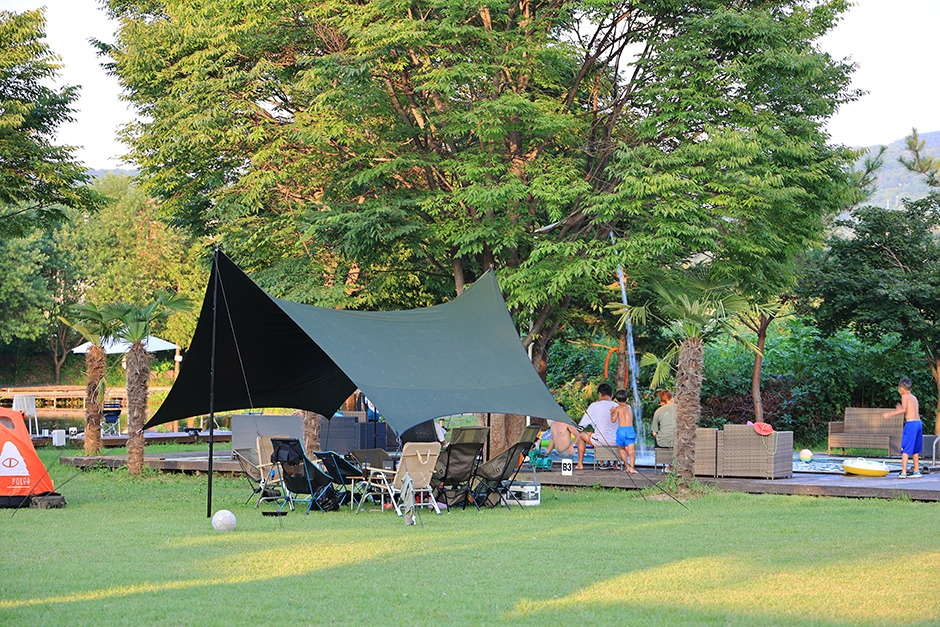 포천 IC에서 가까운 캠핑장으로 저수지 뷰를 즐길 수 있는 예쁜 캠핑장이다. 넓은 잔디마당과 넓은 저수지 낚시터를 이용할 수 있는 체험형 캠핑장으로 유명하다. 사이트는 총 15개로, 간격도 넓고 넉넉해서 인기가 많다. 저수지 뷰 사이트, 잔디밭 데크 사이트, 일반 캠핑 사이트, 그리고 주차장 차박 사이트까지 다양한 종류가 있다. 잔디밭이지만 사이사이 나무가 잘 배치되어 있어, 그늘이 시원하다. 낚시터는 캠핑장에서 직접 관리 중으로 낚시 용품 대여도 가능하며, 어렵지 않게 대어를 낚을 수 있다. 매점이 없지만 캠핑장에서 도보 3분 거리에 편의점이 있어 불편함은 없다.