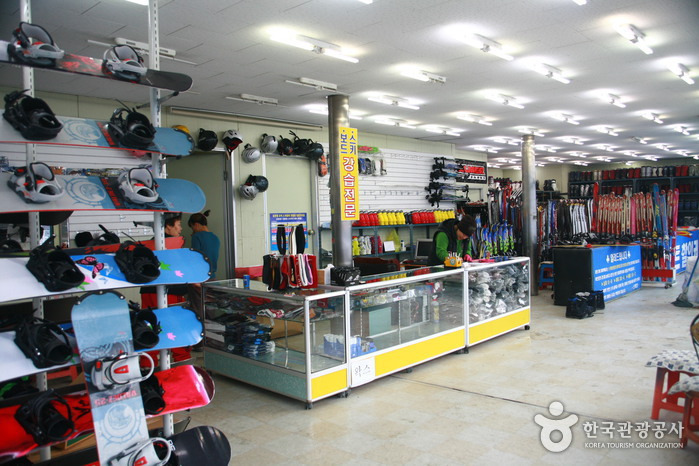 용평 스키장과 차로는 10분 거리 내에 위치해 있어 접근성이 좋다. 스키, 보드, 의류, 헬멧 등 각종 장비렌털은 물론이며 용평리조트 리프트권도 할인이 가능하다. 또한 보드와 스키 강습이 모두 가능하며 전문 경력 강사진들이 대기 중이라 초보자도 걱정 없이 강습이 가능하다.