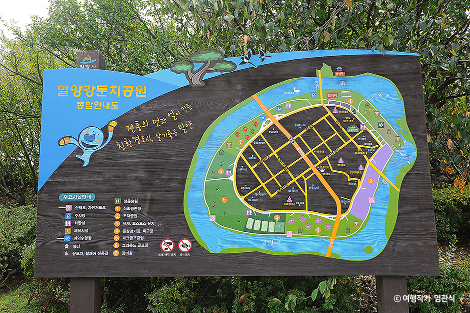 산책코스(밀양읍성, 밀양관아, 밀양교, 오리배선착장, 파크골프장, 조각공원, 삼문송림, 야외공연장, 아랑각, 무봉사, 박시춘옛집, 천진궁, 영남루 등)