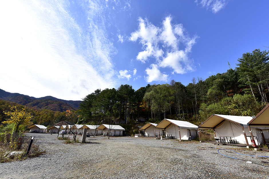 2020년 8월에 오픈하여 넓고 깨끗한 내부를 자랑한다. 글램핑만의 편의성을 높이기 위해 모든 객실에 화장실과 샤워실을 갖추고 있는 것이 특징이다. 이곳은 텐트마다 ‘불멍’을 즐길 수 있도록 화로대와 테이블이 제공된다. 어둠이 내려앉은 밤이면 붉게 타오르는 장작에 둘러앉아 마시멜로를 구워 먹으며 여유를 즐기면 좋다. 글램핑 텐트 외에도 귀여운 감성 카라반 객실도 마련돼 있다. 레트로 풍의 동글동글한 카라반으로 인스타그램 감성의 인증샷을 남기고픈 젊은 이용객들에게 인기가 좋다. 여름에는 간이 수영장이 마련되고 캠핑장 앞에 계곡도 있어 여름철 피서지로 방문하기에도 제격인 곳이다.