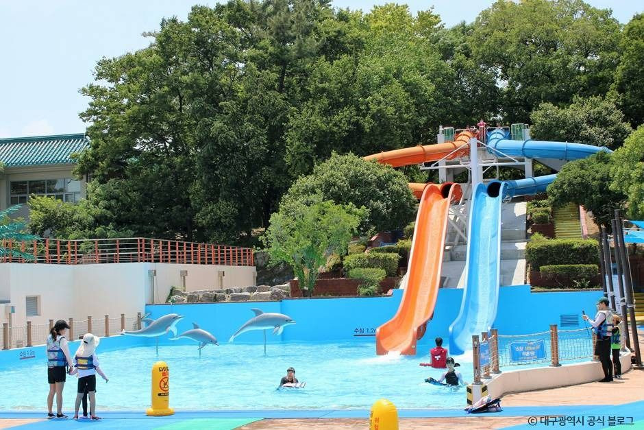 두류수영장은 대구 달서구 두류공원 내 5만 6,523㎡ 규모 부지에 조성된 종합 수영 시설이다. 실내에는 다이빙풀, 경영풀, 경영연습풀이 있으며, 워터파크는 야외에서 운영되어 여름철 물놀이 장소로 인기가 많다. 다이빙풀은 깊이 5m, 경영풀은 50m 길이의 8 레인으로 최대 1,500명까지 수용 가능하다. 워터파크에는 파도풀, 바디슬라이드, 유수풀, 유아풀 등이 마련되어 있으며 수심과 길이에 따라 다양한 연령층이 이용할 수 있다. 탈의실, 샤워실, 의무실, 수유실 등 편의시설도 갖춰져 있어 가족 단위 방문객에게 적합한 여름철 인기 명소다.