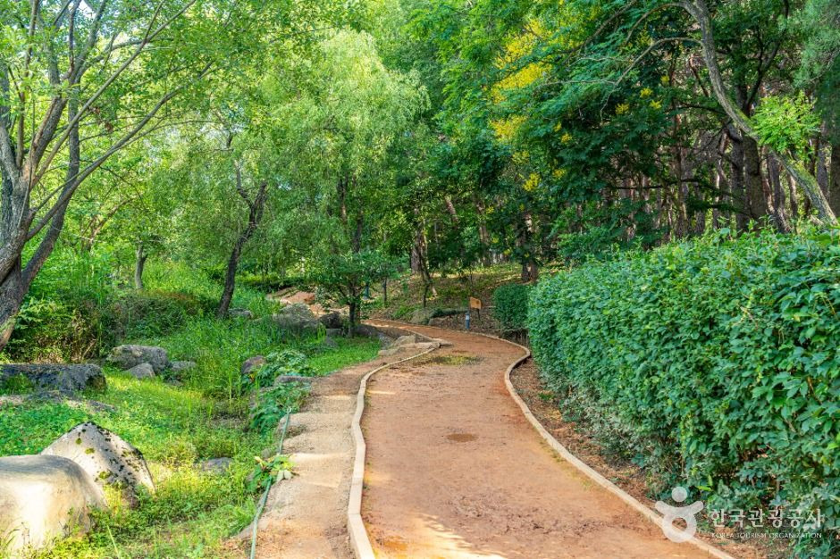 숲 둘레에 조성된 황톳길은 1㎞로 맨발로 걷는 길로 황토볼, 백토볼, 칠보석볼, 자철광석, 지압보도, 야자매트 등으로 구성되어 있다. 발은 제2의 심장으로 발바닥 자극을 통해 혈액순환, 면역기능회복, 장기 활성화 등에 도움이 된다고 한다. 맨발 걷기가 끝나는 지점에는 발 마사지 공간과 세족장이 있다. 도심 속 숲에서 나무그늘과 피톤치드를 맡으며 건강을 회복하고 힐링할 수 있는 공간이다.