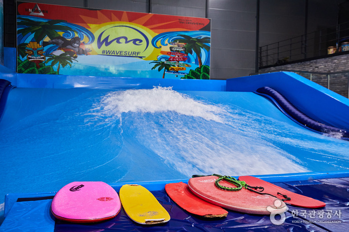 웨이브서프는 날씨, 온도에 상관없이 1년 365일 언제나 서핑을 즐길 수 있는 국내 실내 서핑장이다. 실내 온수 서핑장 ‘웨이브서프’는 남녀노소 누구나 즐길 수 있는 실내서핑의 특별한 경험을 할 수 있는 공간이며, 초보자를 위한 강사진들이 바디보드와 스탠딩보드를 어떤 자세로 타야 하는지, 어떻게 라이딩을 하는지, 기초부터 섬세하게 타는 방법과 기술을 알려준다. 웨이브서프는 실내서핑 외에도 클라이밍, 서프카페를 동시에 경험할 수 있는 새로운 장소를 제공하고 있다. 건물 외벽에 네 가지 루트의 클라이밍 시설이 있는데, 초보자나 어린이도 쉽게 오를 수 있도록 오토빌레이 시스템을 갖추고 있기 때문에 쉽게 이용이 가능하다.