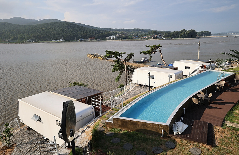 동검도 바닷가에 위치한 펜션 겸 카라반 캠핑장이다. 일반 캠핑 사이트는 없고, 풀옵션의 카라반이 총 5개 있는데, 탁 트인 바다 전망과 개인 바비큐를 즐길 수 있도록 되어 있다. 카라반 내부의 주방, 화장실, 냉난방 시설이 잘 갖춰져 있어서 편리하다. 집기류 이외에 비비큐 식재료도 예약 가능하다. 또한 부지 내에 야외 인피니티 수영장과 야외 수영장을 갖추고 있어서 물놀이를 즐기기 아주 좋으며, 펜션을 이용하면 실내 개별 수영장과 스파까지도 이용 가능하다.