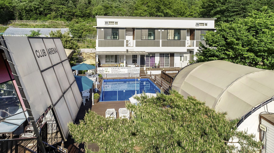 맑은 홍천강과 푸르른 금학산을 보며 힐링할 수 있는 풀 사이드 글램핑이다. 수영장을 중간에 두고 양쪽으로 글램핑 텐트들이 들어 서 있다. 이곳은 펜션과 글램핑이 함께 운영되고 있는데 자연 속 현대적인 감각을 모토로 꾸몄다. 그 때문에 실내 인테리어가 예쁘고 아늑한 면을 강조해 꾸며졌다. 야외 수영장, 카페, 미니 정원 등을 갖추고 있다.