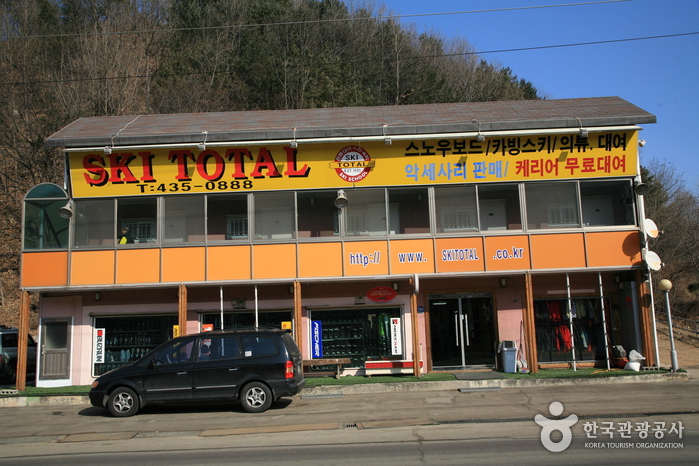 비발디파크 정문 삼거리에 위치한 스키, 스노우보드 전문렌탈샵이다.