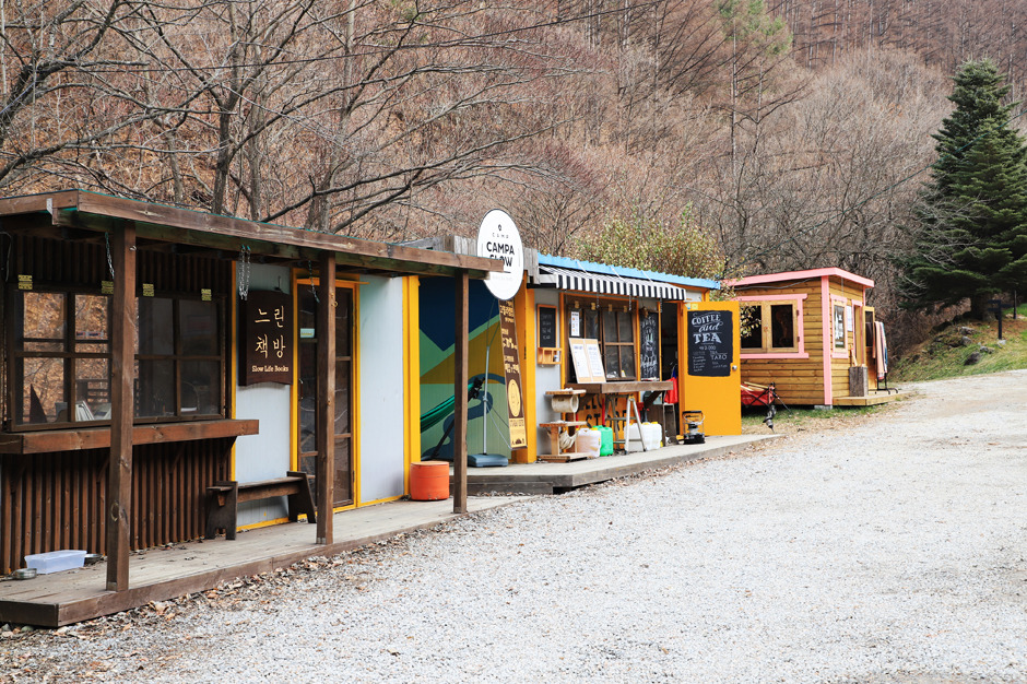 울창한 나무 그늘과 계곡바람을 만끽할 수 있는 캠핑장이다. 이곳은 100% 예약제로 운영되고 있다. 6개의 데크사이트, 6개의 글램핑, 7개의 파쇄석 사이트로 이루어진 캠핑장으로 개인 시간을 가는데 방해받지 않도록 배치에 신경 썼다. 캠핑장 내 느린 책방과 책 읽는 공간이 마련되어 있다. 캠핑장 텃밭에는 다양한 채소를 기르고 수확체험을 제공하기도 한다. 공방에서 목공체험에 참여할 수도 있다.