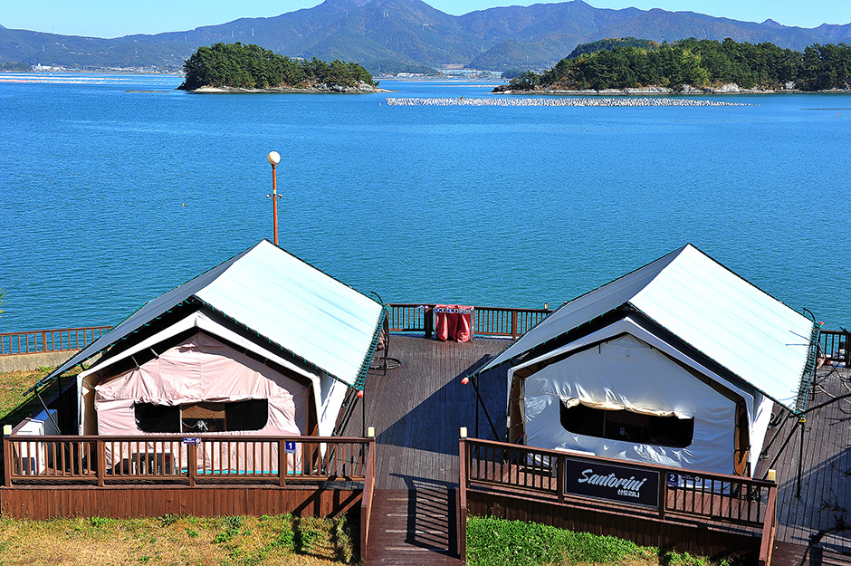 (고성)다이노캠핑장은 잘 갖추어진 캠핑시설과 함께 파티보트, 바다낚시 등의 수상레저를 동시에 즐길 수 있다는 장점을 갖고 있다.