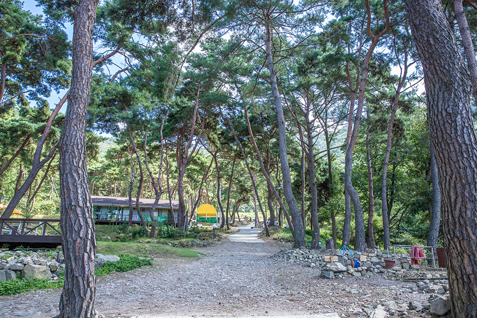 솔베이 캠핑장은 충북 괴산군 감물면에 자리했다. 괴산군청을 기점으로 약 14km 거리며, 자동차를 타고 임꺽정로, 중부로, 충민로를 차례로 거치면 닿는다. 도착까지 소요 시간은 20분 안팎이다. 고즈넉한 시골의 풍광을 벗 삼아 달리다 보면 울창한 소나무 숲이 캠퍼를 반긴다. 고개를 최대한 뒤로 젖혀야 나무 꼭대기를 볼 수 있을 정도로 키가 크다. 이 덕택에 한여름 뙤약볕도 두렵지 않다. 캠핑장에는 일반야영장 30면을 마련했다. 이 가운데 데크가 11면이며, 크기는 가로 4m 세로 6m다. 나머지는 잔디 4면과 파쇄석 15면이며, 크기는 제한이 없다. 주요 부대시설로는 펜션을 비롯해 수영장, 트램펄린, 산책로 등이 있다.