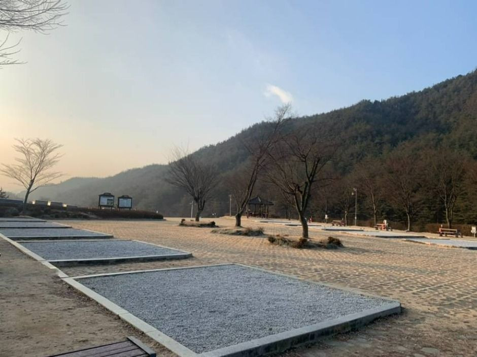 제1오토캠핑장은 15면, 제2오토캠핑장은 38면으로 이루어져 있으며 취사장, 화장실, 샤워장 및 전기시설 등을 갖추고 있다. 또한 주변에 목재문화체험장, 농구장, 산책로 등이 있어 체험과 휴식이 공존하는 캠핑을 즐길 수 있다. 사이트마다 공간이 넓어 여유롭게 텐트를 칠 수 있어 편하게 지낼 수 있고 샤워장과 취사장에는 온수가 나와 편리하게 이용할 수 있다. 여름철 야외 물놀이장은 남녀노소가 좋아하는 최고의 피서지이다. 특히 수심이 깊지 않아 어린이가 놀기 좋다. 반려동물은 출입금지이며 카라반 입장은 제2오토캠핑장만 가능하다. 또한 지정된 장소 외 물놀이, 텐트, 취사행위는 금지이며 어길 시 퇴장조치가 이루어진다.