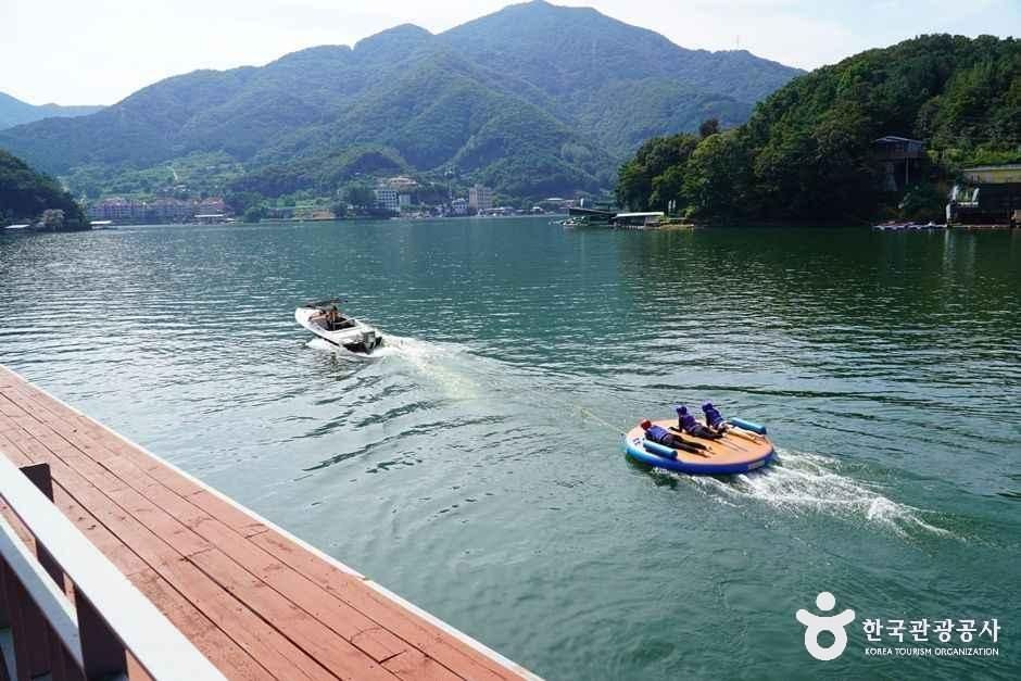 청평에 있는 수상 레저를 즐길 수 있는 곳으로 수상스키, 웨이크보드 등을 쉽게 배울 수 있고, 중급자들은 맘껏 즐길 수 있다. 물 위에서 나는 호버보드를 보유하고 있으며 색다른 수상 스포츠를 즐길 수 있다. 제트스키나 모터보트로 스피드를 즐길 수도 있다. 플라이피쉬, 바이퍼, 포땅콩, 투땅콩, 바나나보트 등의 놀이 기구가 있고, 물썰매장도 있으며 아이들이 튜브를 타고 놀 수 있는 공간이 있어 원할 경우 아이들 수준에 맞게 놀이 기구를 운영해 준다. 펜션도 함께 운영하고 있어 물놀이 후 편히 쉴 수 있고 연이어 물놀이를 즐길 수도 있다. 또한 근처에 닭백숙이나 매운탕 등의 맛집이 있다.