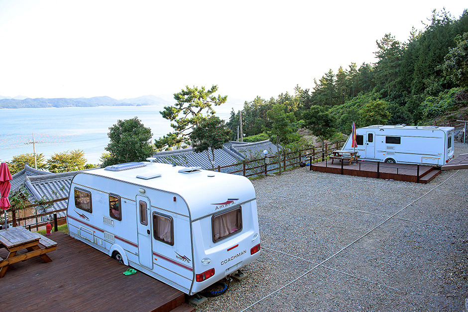 오션뷰가 환상적인 보성 지중해 야영장은 펜션과 캠핑장 두 가지 모두 가능해 두 팀이 동시에 즐길 수 있는 게 가장 큰 장점이다. 모든 사이트에서 최고의 바다뷰를 만끽하며 캠핑을 즐길 수 있고 해변 산책로가 곳곳에 있어 구경거리가 많다. 또한 식물원, 인공폭포, 수영장 등은 체험학습장을 온 듯 다채롭다. 보성 지중해 야영장은 화재 위험으로 화롯대, 장작 등은 사용이 금지되어 있으며 반려견 동반은 가능하다. TV프로그램 바퀴달린집 촬영지로 유명하며 비봉 공룡알 화석지가 인접해 있어 함께 둘러보기 좋다.