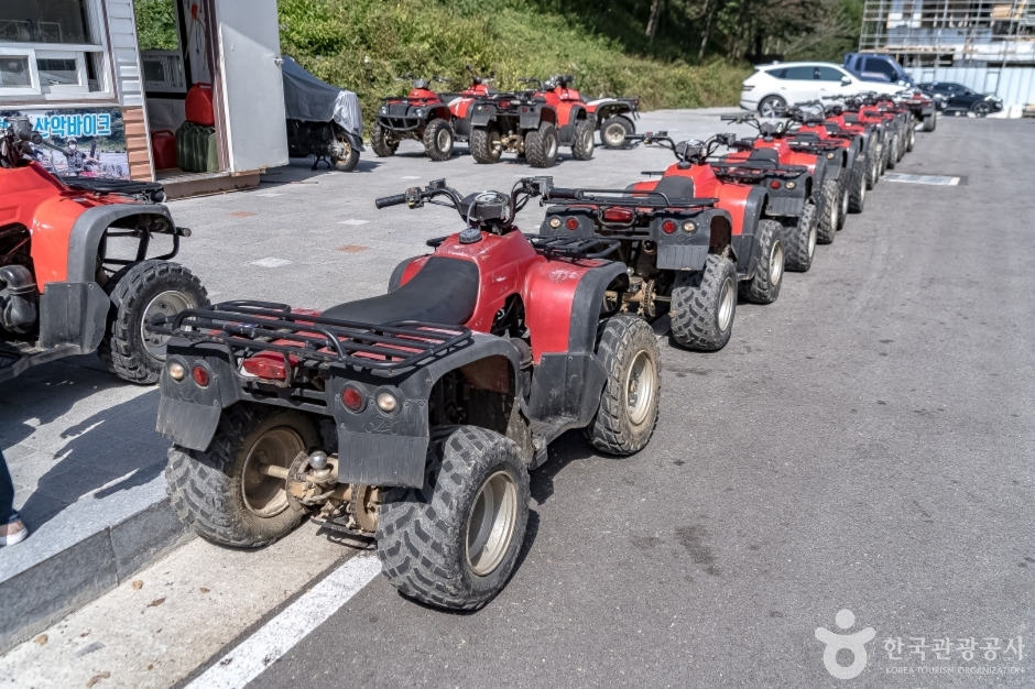 정선 아리힐스는 강원도 정선에 위치한 액티비티 전문 관광명소로, 멋진 풍경을 바라보며 짚라인, 짚와이어, ATV 산악바이크 등 야외 스포츠를 즐길 수 있는 곳이다. 가이드와 함께 숲속의 길을 질주하는 산악바이크는 30분 정도의 시간이 소요되며 스릴을 온몸으로 느낄 수 있는 레포츠이다. 평지에서 우선 코스 연습 후 출발하게 되며 바이크 운전이 불가하다고 판단될 경우, 전문가가 동승하거나 환불해 주니 부담 없이 도전해 볼 수 있다. 기상악화 시에는 운행이 중단될 수 있으니 방문 전에 미리 알아보는 것이 좋으며, 미성년자는 단독으로 운행이 불가하다.