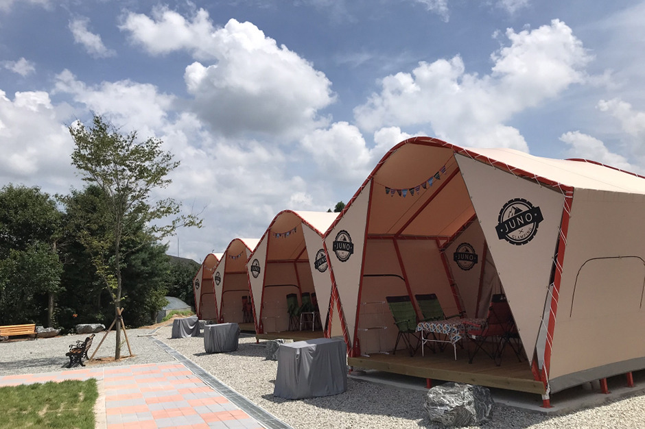 테하스랜드 글램핑장은 충남 논산시 연무읍에 있다. 논산시청을 기점으로 자동차를 타고 10분 정도면 충분히 도착한다. 캠핑장은 연무대 고속버스 터미널 인근에 있어 대중교통을 이용해 접근하기에도 무리가 없다. 캠핑장은 글램핑 16개 동을 운영 중이다. 침대, 식탁, 의자, 에어컨, 취사도구, 식기류, 개수대, 화장실, 샤워장이 있어 일상생활을 하기에도 전혀 무리가 없다. 외부 전용 데크에는 바비큐 시설을 구비했다. 이곳의 강점은 부대시설이 알차다는 것이다. 여름에는 수영장을 개장하며 사계절 내내 썰매장을 운영한다. 펜션 5개 객실을 비롯해 카페, 평상, 트램펄린 등도 있다. 캠핑장 주변에는 관촉사, 탑정호, 백제군사박물관 등 논산의 내로라하는 관광지가 즐비하다. 탑정호 인근에 매운탕 전문점이 많아 먹을거리 걱정이 없다.