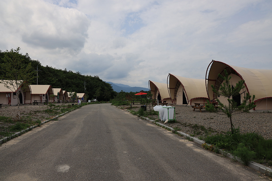 그랑블루 글램핑 야영장은 양양에 위치한 펜션을 겸한 글램핑장이다. 도보로 3분 거리에 설악 해수욕장이 있고, 낙산 해수역장은 차량으로 5분 거리, 죽도 해수욕장은 15분 거리로, 해수욕과 서핑을 즐기기 최적의 위치에 있다. 글램핑은 총 15개가 운영 중인데, 개별 화장실, 샤워실이 갖춰져 있고, 에어컨은 물론 바닥 난방도 가능하여 사계절 이용에 불편이 없다. 인근에 장 볼만한 곳은 마땅하지 않아 미리 낙산항이나 대포항에서 횟감이나 해산물을 사 오거나, 속초나 양양 시내에서 장을 봐서 들어가는 편이 편리하다.