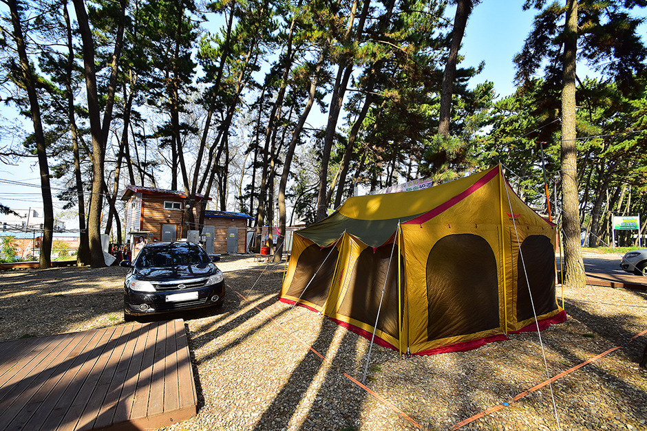 충남 서천, 춘장대해수욕장에 위치한 소나무 숲에 위치한 오토캠핑장이다.