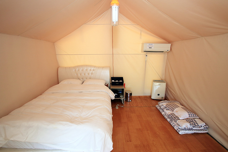 대부도캠핑성은 경기도 안산시 단원구에 자리했다. 영동고속도로 정왕 IC를 나와 탄도방조제를 건너면 닿는다. 내부로 들어가면 왼쪽에 관리소 겸 매점이 있다. 매점에서는 주류, 음료, 생수, 과자, 라면 등을 판다. 매점을 기점으로 카바나 8면, 대형 카바나 1면, 인디언텐트 1면이 있다. 곳곳에 심은 야자수는 이국적인 분위기를 연출한다. 대형 헬리콥터 둘레에 설치한 소형 롤러코스터, 곳곳에 자리한 그네, 수영장과 트램펄린 등 부대시설도 많다.