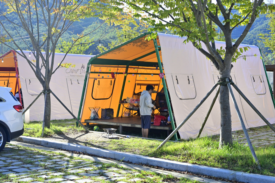 매점, 화장실, 샤워실 모두가 단층 관리동에 마련되어 있으며, 멀리서 봐도 눈에 띈다. 각 곳에 소화기도 마련되어 있어 안전에 대한 우려도 내려놓아도 된다. 화장실은 청결할 뿐만 아니라, 방향제도 놓여 있어 쾌적하다. 캠핑장 한쪽에는 놀이터와 트램펄린도 마련되어 있어 아이들과 즐기기에도 적당하다. 주차장도 넓게 마련되어 있으며, 족구장도 갖춰져 있어 단체 숙박 시에도 고려할 만하다.